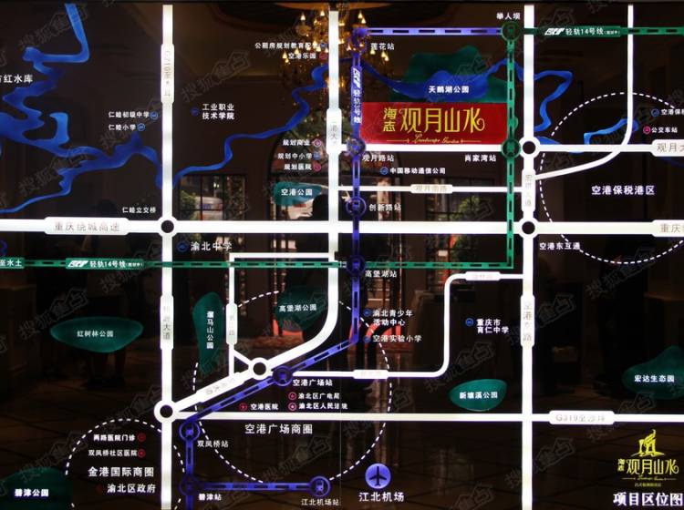 江北观音桥——机场路——空港大道、观月大道——海志观月山水