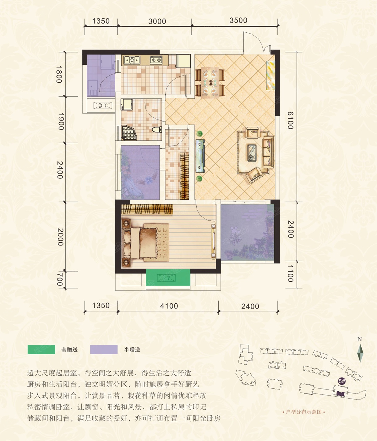 海志观月山水总建筑面积为15万方,容积率为2.5,绿化率为36%,车位近1:1的高配比,由5栋高层、7栋花园洋房、临街商业三个部分组成的综合性城市社区。