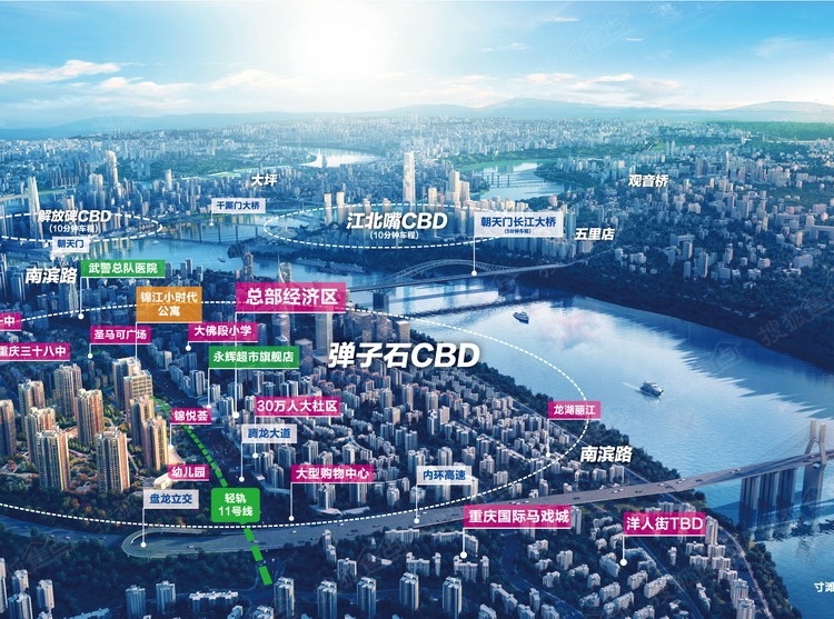 轨道交通:规划中的轻轨11号线和环线(弹子石站);