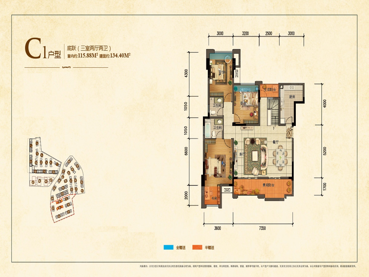 2室2厅1卫-高层A2户型,2室2厅1卫1