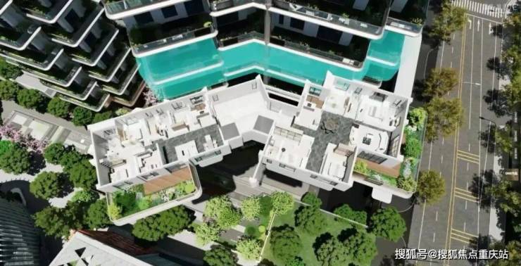 认真看这四栋楼的布局可以发现,它没有墨守成规按地块原来的规矩排布,而是迎着塔子山的方面整体进行45度转体,遵循景观更大化的原则,采用蝶式错位围合全点布局,打造全楼王视野和舒适楼间距。