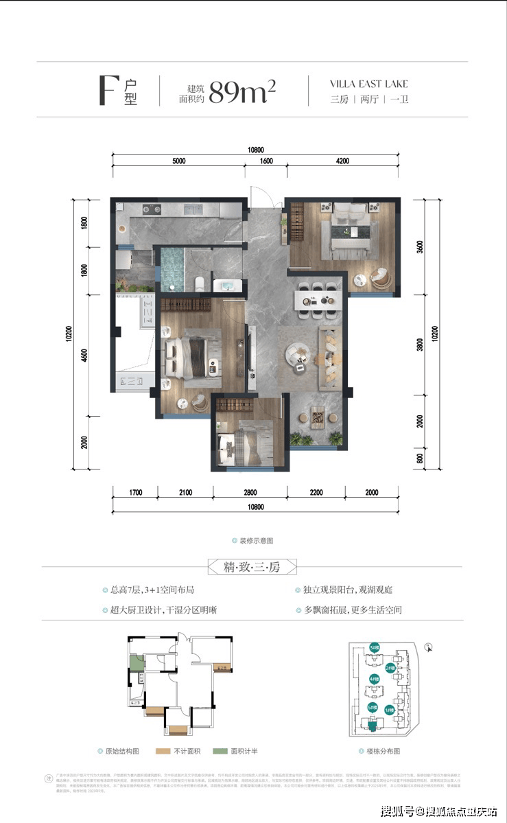·总高7层,3+1空间布局 ·独立观景阳台,观湖观庭 ·超大厨卫设计,干湿分区明晰·多飘窗拓展,更多生活空间