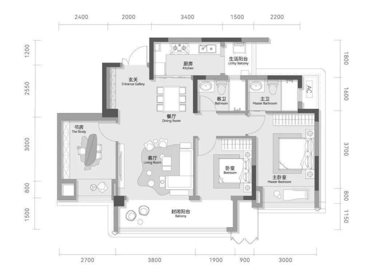 建面115㎡平户型