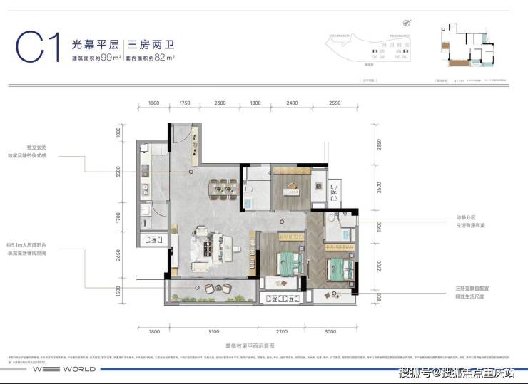 C1 建面约99平套三