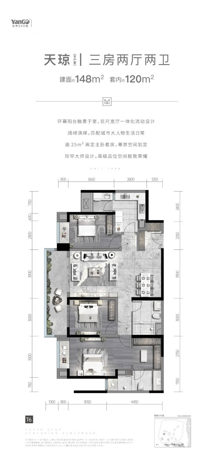 建面约148平套三