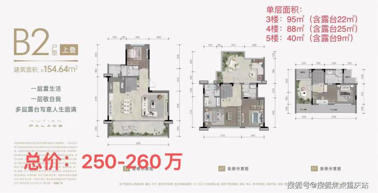 两点五面宽上叠【建面约154㎡ - 162㎡】,总价处于250 - 260万的范围。