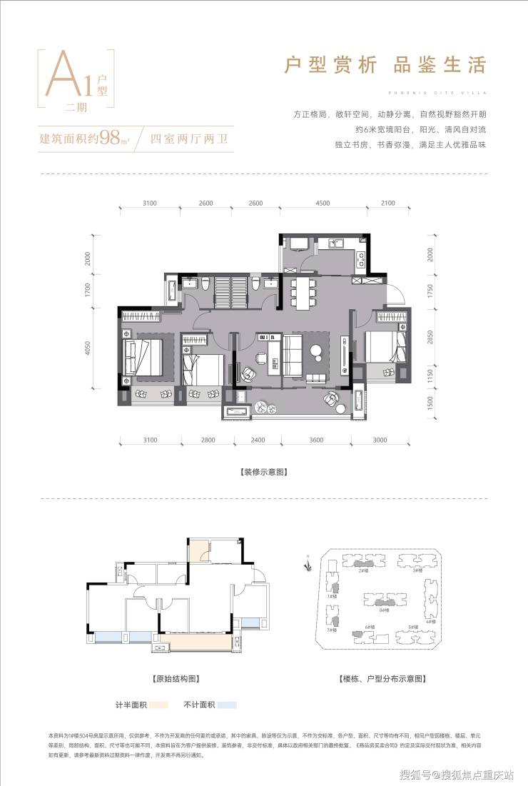 项目总占地110.14亩,总建筑面积15.46万方,绿化率高达30.01%,容积率约1.5,项目分三期开发,整体总户数1196户,车位1274个,车位配比1:1.07。