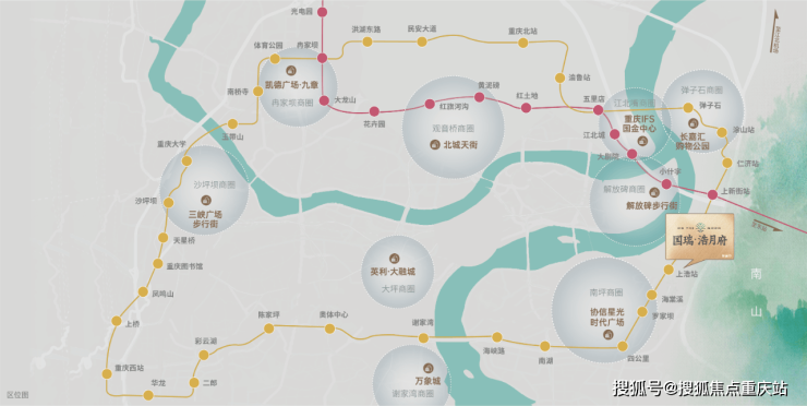 环线轨道所到之处皆为城市精华,串联起六大商圈、重庆北站/西站等交通枢纽站、城市级医疗配套等都在其上。从6号线上新街站出发,一站解放碑,两站江北嘴。