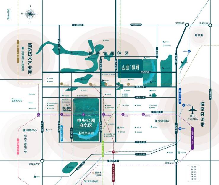 约600万方两江国际商务中心;项目约1⃣km范围内规划约60万方商业用地;自身拥有约3.3万方商业配套