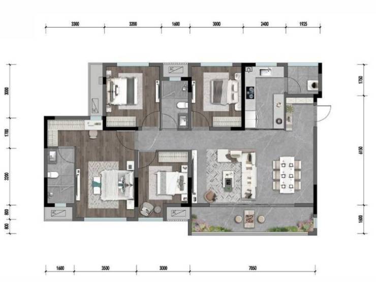 A:建面约125㎡,套内108㎡四室两厅两卫,得房率约99%