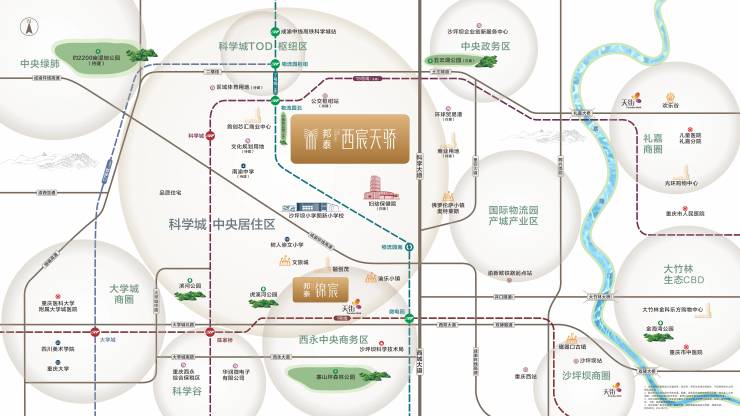 完善医疗服务:沙区妇幼保健院(在建)+重庆医科大学附属大学城医院+陈家桥医院+礼嘉儿童医院等,为健康生活加分。