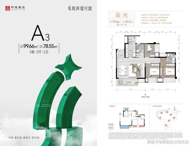 **3号楼重磅登场**3号楼此次震撼亮相,具备众多突出优势。价格方面,清水房源中,88㎡户型的总价110万起,99㎡户型的总价120万起;精装房源里,88㎡户型的总价120万起,99㎡户型的总价130万起。具体优势如下:1. **地理位置与环境优势**:3号楼地理位置得天独厚,处于小区最内侧,不临路,没有车流噪音的干扰,居住环境安静私密。并且底部既无底商,又设置为架空层,有效避免了油烟和嘈杂的干扰。同时,楼栋地势较高,视野极为开阔,楼前有美丽的水景瀑布以及宽敞的大中庭景观,极大地提升了居住舒适度。2. **楼栋品质与配置亮点**:楼栋的品质与配置尽显高端。酒店式入户大堂,挑高6米且精装修,尽显尊贵。配备奥的斯高端智能电梯,运行时静音效果出色,速度又快,采用2梯6户配置。阳台大面积采用玻璃栏板,落地窗设计不仅美观,还能带来极佳的采光和视野。3. **户型优势突出**:户型设计十分精巧。99㎡经典户型采用大横厅设计,动静分区合理,得房率高(赠送面积大);88㎡稀缺小三房,双卫配置十分实用,刚需购房者上车门槛较低,户型方正,空间利用率高,没有浪费面积。而且房屋层高3.05米,南北通透,采光通风效果俱佳。户型图相关信息:A1户型建面99.8㎡ ,套内78.66㎡