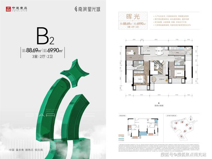 **项目基础信息**物业由中建壹品物业负责(2022中国物业服务百强企业),服务品质有保障。绿化率≥30%,小区环境优美。项目总户数为1170户,总车位1228个,交付标准为清水交付,拿地时间是2022年12月13日。**项目特色彰显**项目拥有五星级酒店大堂、挑高6米的入户大厅、百万级豪宅标准的架空层、超级大中庭以及超大瀑布,打造高品质居住体验。【中建壹品南滨星光城】售楼部热线:023 - 68855575(已认证)温馨提示:看房请提前致电售楼部预约!享内部优惠政策!【有免费看房车接送服务,如需预约,请致电售楼部】
