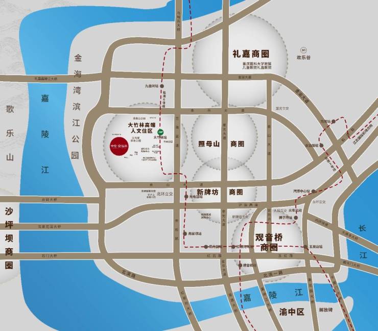 商业配套方面,从该项目出发,驾车5 - 10分钟即可抵达金科美苓汇和龙湖星怡广场。在周边五公里范围内,还有礼嘉天街、龙湖原著天街等繁华商业地带,开车前往大约需要20分钟 。众多商业场所汇聚,满足业主多样化的购物、休闲需求。交通配套十分便捷,项目门口就设有公交站,乘坐公交三个站,大约七八分钟就能到达大竹林轻轨站。如此优越的交通条件,让业主轻松畅达城市各处。医疗配套也相当完善,莱佛士医院(五星级私立医院)距离项目仅需开车5分钟 。此外,两江新区人民医院、礼嘉儿童医院、江北中医院、妇幼保健院等医疗机构,开车20分钟左右即可到达,为业主及其家人的健康保驾护航。公园配套丰富多样,有金海湾滨江公园、江与城体育公园、竹林公园、龙凼山公园等。这些公园为业主提供了休闲散步、健身锻炼的好去处,让业主尽享自然之美。教育配套上,星光柏溪小学 、星海中学(已划片)就在附近,为孩子的教育提供了有力保障。