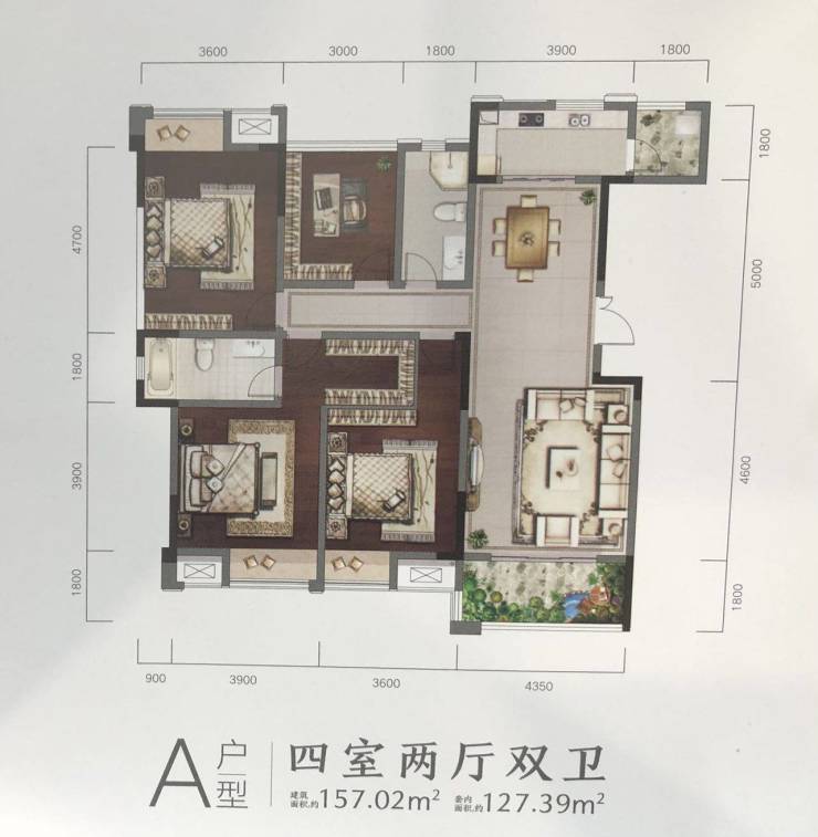 户型鉴赏:建面约157平套四户型,满足家庭居住需求。