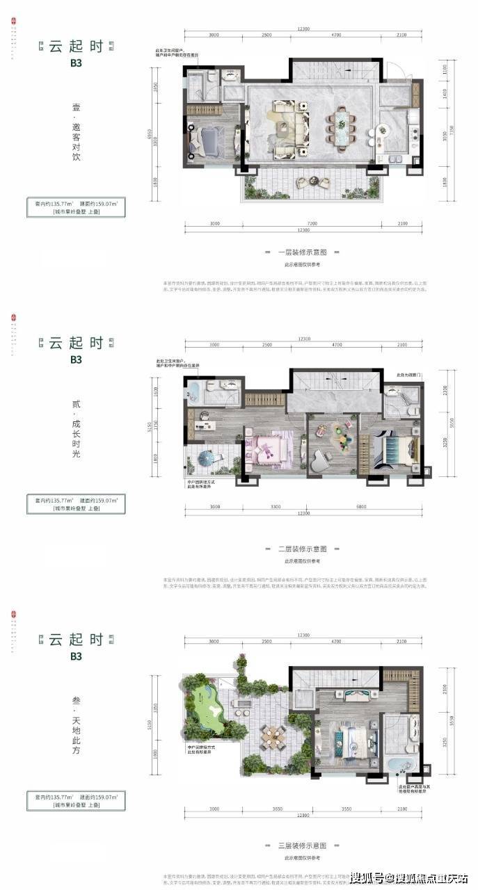 上叠:套内134-135㎡,实得约190-200㎡