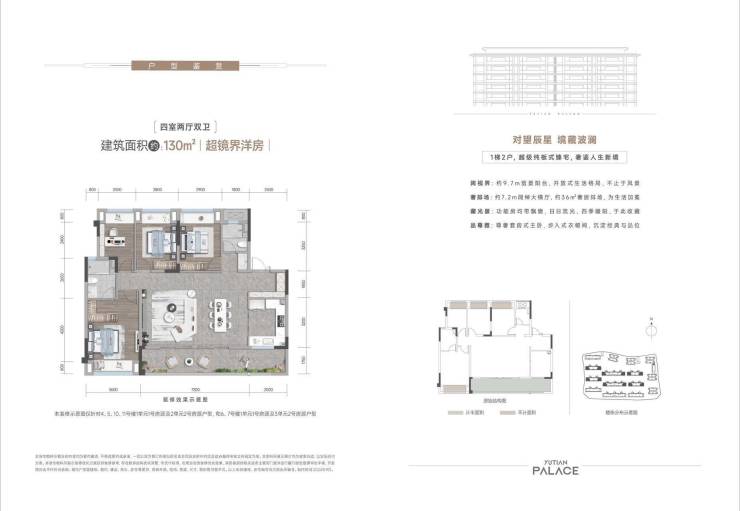T2板式超境界洋房产品,位于5号楼,建筑面积达130平米。