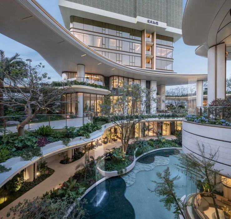 建发·海耀超脱了传统住宅标准,在公区和景观的打造上塑造出一个气势磅礴,大开大合的空间。这个空间的尺度,比我们见过的所有楼盘都更大,充满神性。
