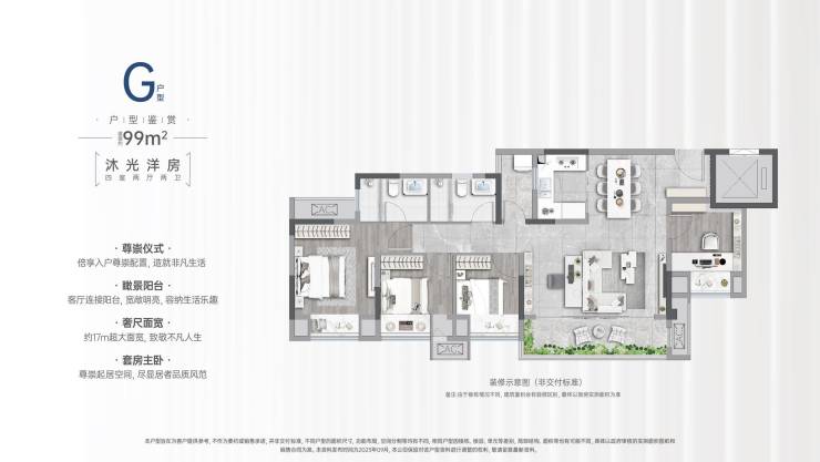 ?户型2:建面99㎡(四房)