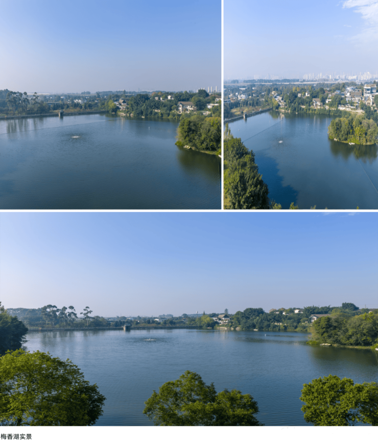 项目沿梅香湖岸线原生布局,建筑与湖岸完全无阻隔,站在阳台视线可直抵湖面:清晨薄雾里,水鸟贴着波纹掠过,仿佛要飞进窗棂;傍晚夕阳下,金辉铺满湖面,对岸树影清晰可数。