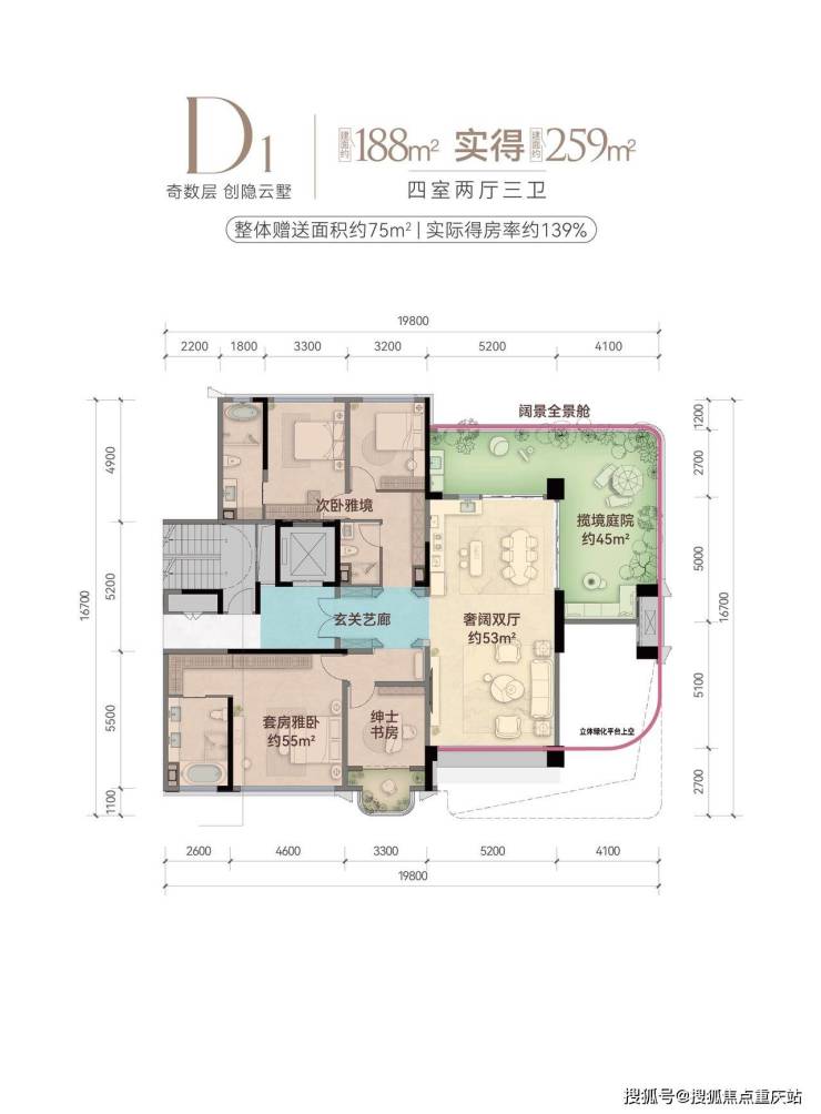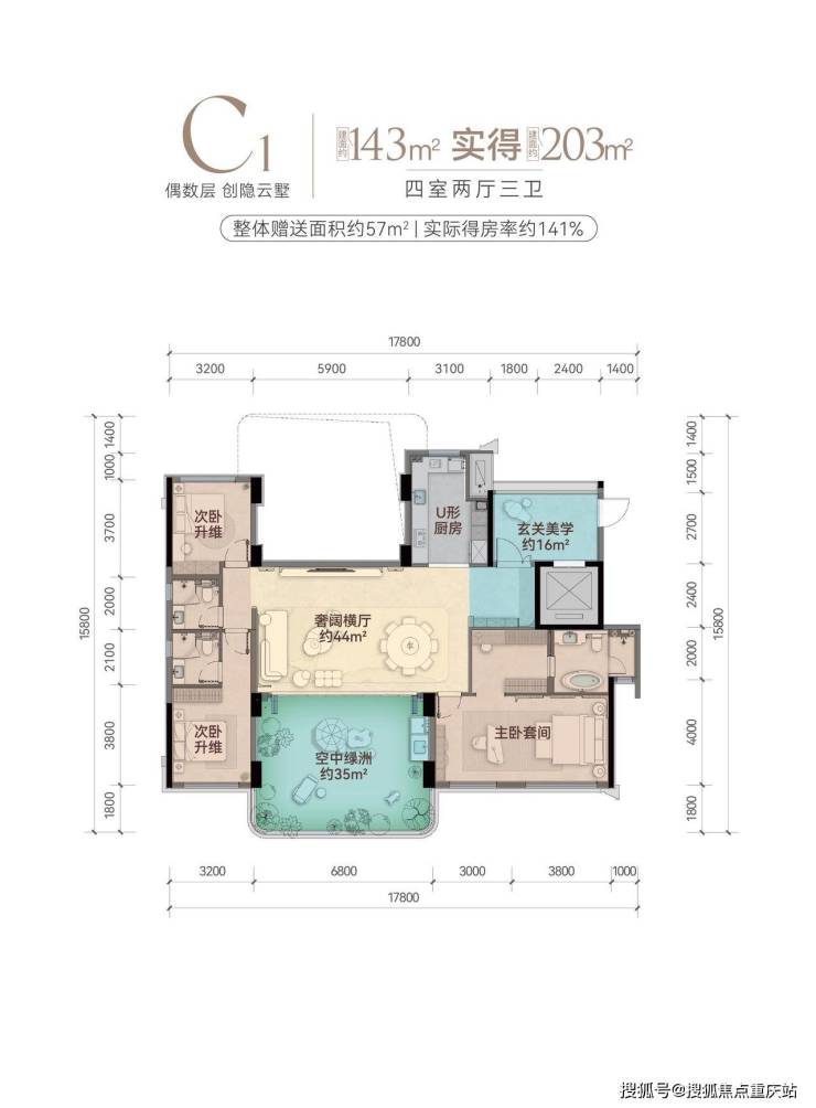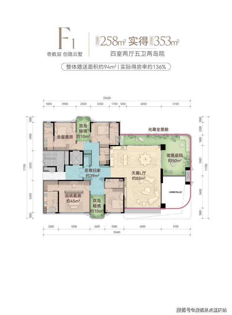 宽庭院|6.8米开间+6.3米挑高+35㎡空中庭院