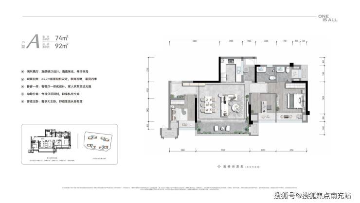 6.项目所有户型均为方厅设计,方厅优于横厅,模糊过道让空间更大、使用率更高,把传统横厅升级为方厅,超高得房率,是更合适高品质生活的户型设计。
