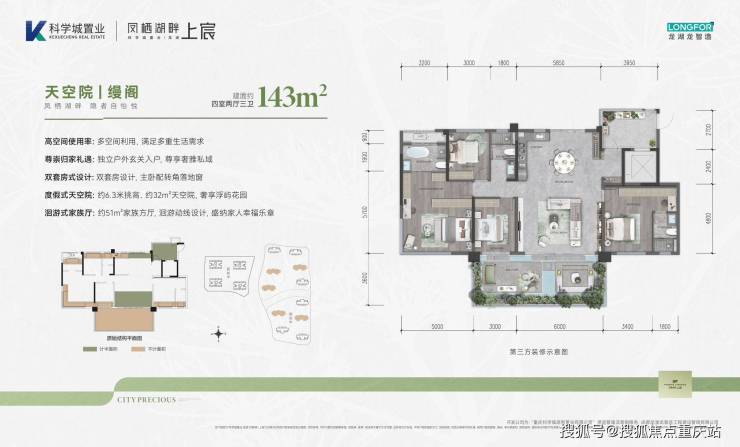 世界500强龙湖集团:重庆高端生活版图,半壁龙湖智造。31年深厚造诣,荣膺中国房地产企业综合实力10强,2022年物业服务满意度领先企业第1位。本项目由龙湖旗下龙湖龙智造进行建造管理,承袭龙湖优秀产品力,焕新科学城人居。