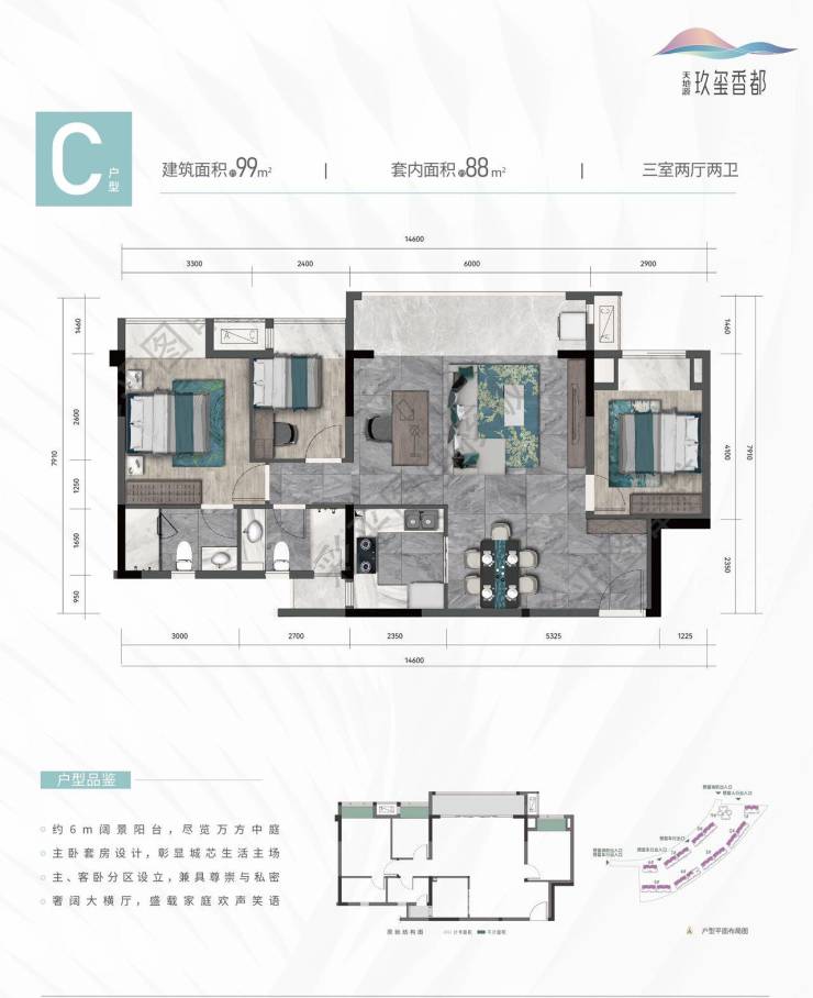 面积:建面99套内88