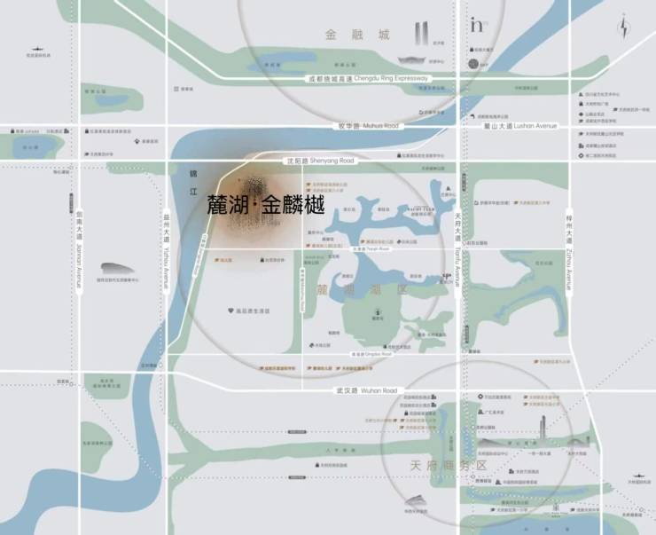 三面环景:项目西邻锦江(锦江生态带绿道),北靠天府森林公园,东面麓湖