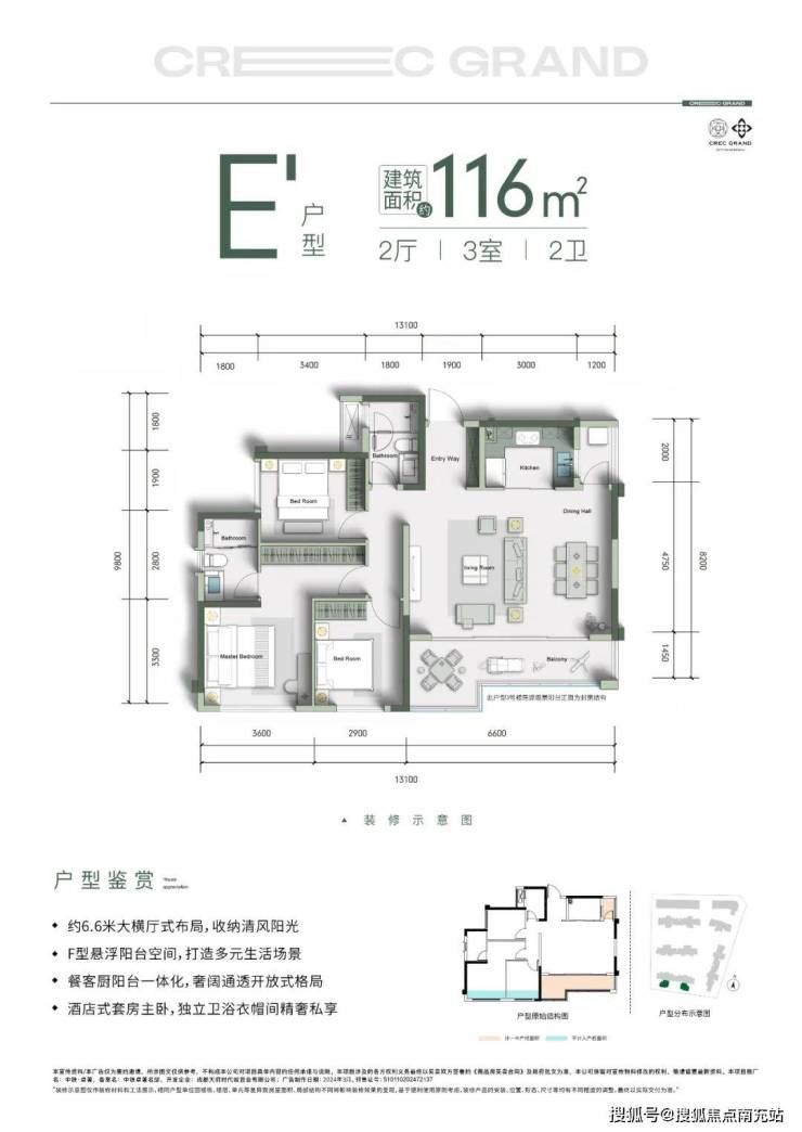 其中,建面约116㎡这款户型是中铁·卓著新上的横厅三房双卫户型,兼具了完备的功能和极致的空间利用率,具有较高的性价比。