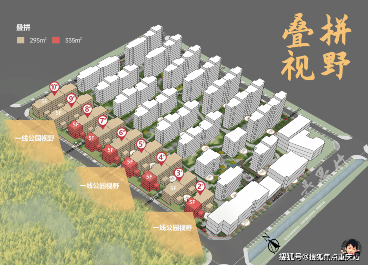 而叠拼,作为中海·锦叁号院的天花板产品,理所当然地被放在了地块西侧,一线临公园的位置。