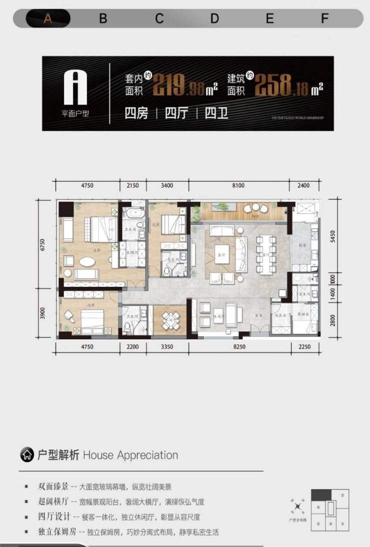 3⃣️全玻璃幕墙的设计全玻璃幕墙设计,270°超凡极目视界,突破传统大平层限制,约8.2米奢阔横厅,超100m极景厅堂,彰显云端宽境人生