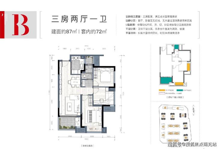 建面:87㎡(三室一卫精装)端户