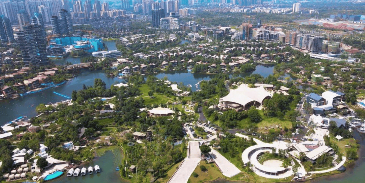 麓湖生态城坐落于成都天府大道两侧,西面靠近麓湖湖区,东面靠近公园区,是天府新区中首要展示的生态示范区。该项目由成都万华集团兴建,于2009年开始筹备,总占地面积8300亩,其中:生态湖泊占地2100亩,道路和绿地面积2000亩,占总面积的49.4%;可供建筑开发的用地面积为4197亩,可开发建筑总面积达到700万平方米。