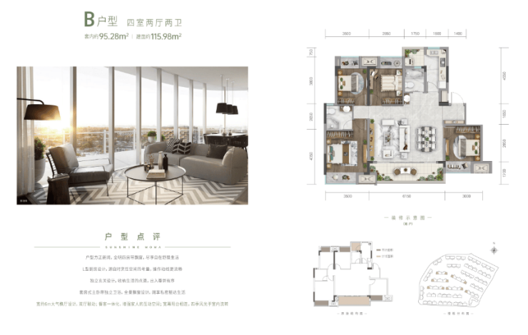 建面约116㎡ 套内约95.28㎡ 四室两厅两卫