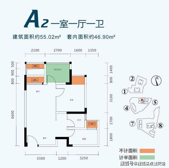 建面/套内:55.02/46.9㎡