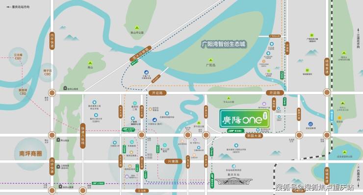 【广阳one博睿庭】由重庆经开区管理委员会旗下的全资国有公司——经开区投资集团倾力投资打造。项目坐落于广阳湾智创生态城的核心区域,地理位置得天独厚。它紧邻轨道24号茶涪路站,与牛头山公园相依相伴,精心雕琢出约57万方的生态大盘。