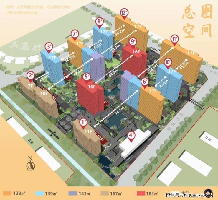 建发招商·源启金沙1期占地约58亩,容积率1.8,地块形状比较方正,共规划了11栋住宅,包括7~11F的洋房和17F的小高层两种形态。