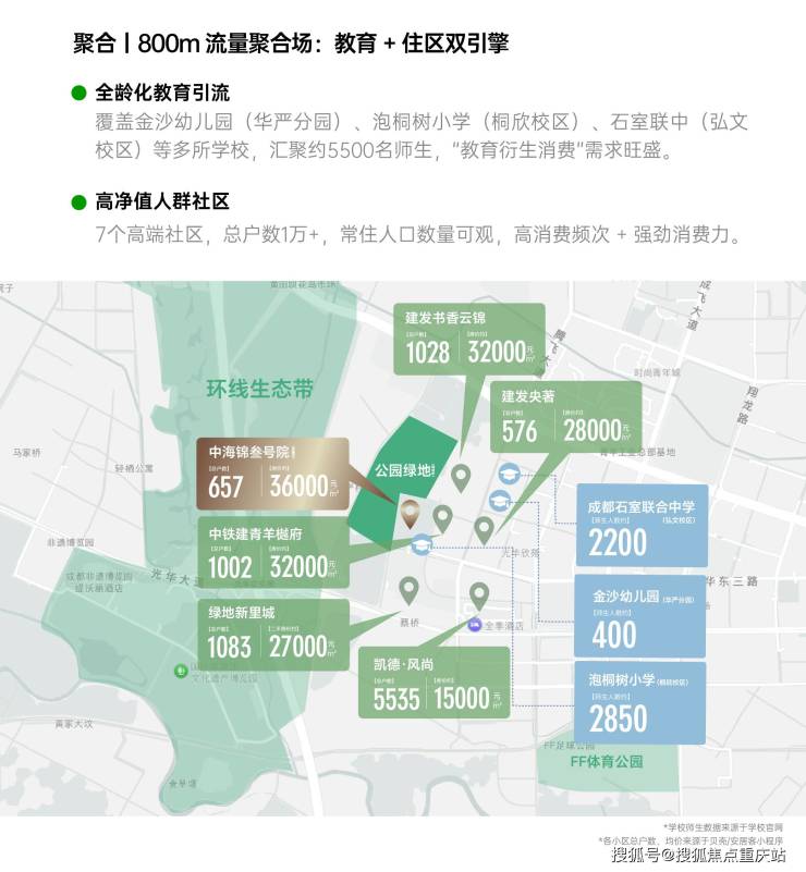 2、聚合 | 800m 流量聚合场:教育 + 住区双引擎