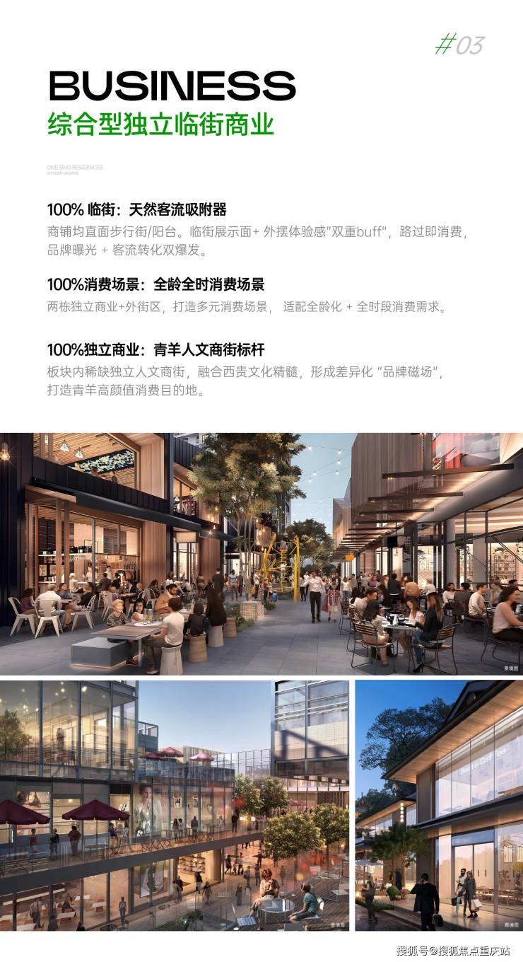 板块内稀缺独立人文商街,融合西贵文化精髓,形成差异化 “品牌磁场”,打造青羊高颜值消费目的地。