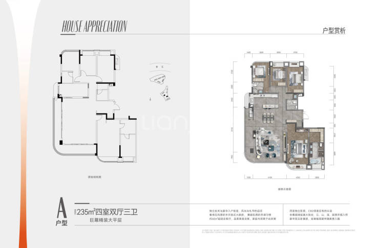 建面约235平套四