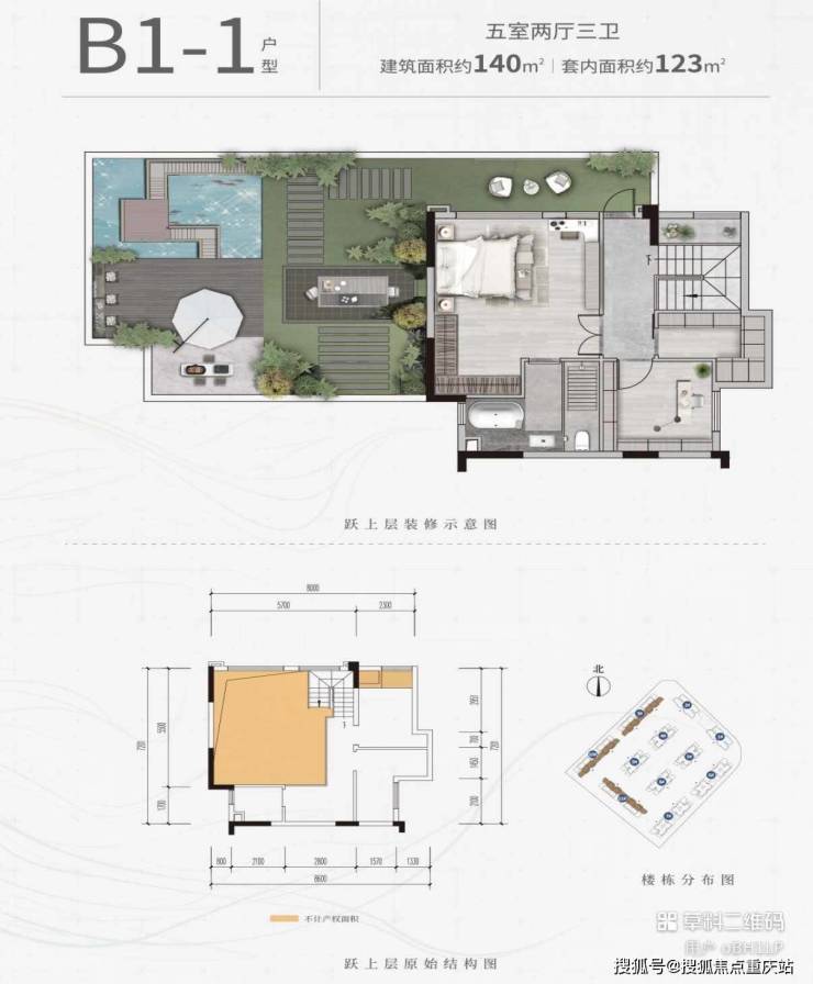 【总价】B1-1户型:建面140㎡/套内123㎡,仅一套约168万