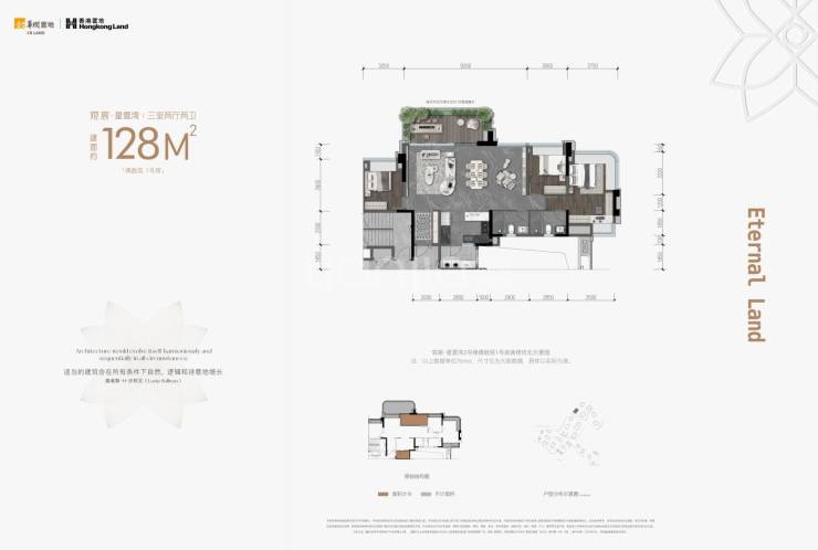 建面约128平套三