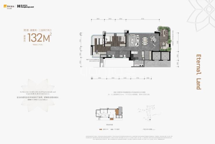 建面约132平套三