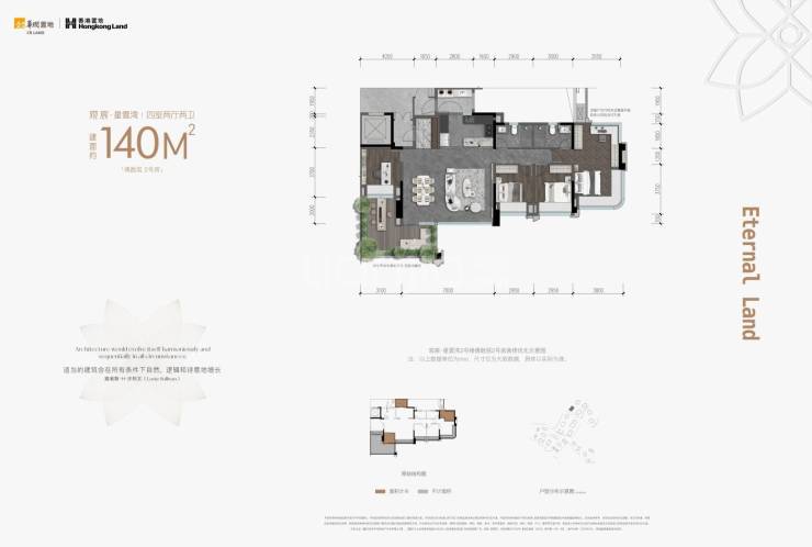 建面约140平套四