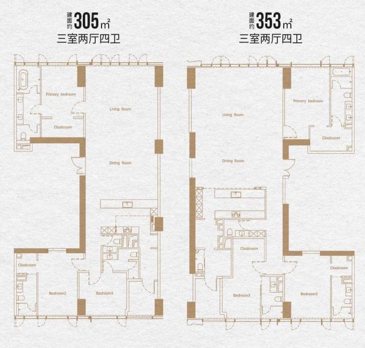 首批次臻席户型 建面约 305-360㎡阔境平层