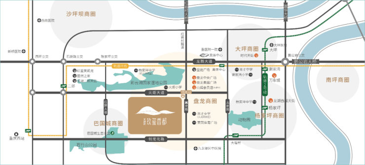 项目位于重庆主城核心九龙坡区域的盘龙商圈,是九龙坡区发展近几年来配套最为成熟的商业中心之一!也是九龙坡区首个“中央生活居住区”,是集居住、休闲、健康、购物、娱乐为一体的宜居生态城。