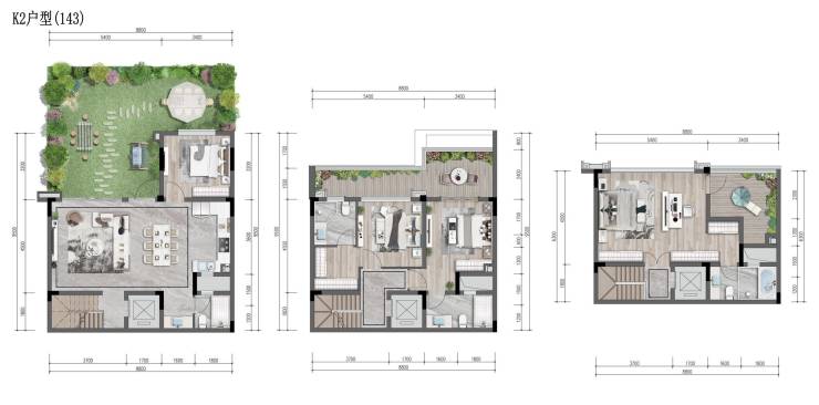 建面143㎡ 套内133㎡ 实得192㎡(中户)