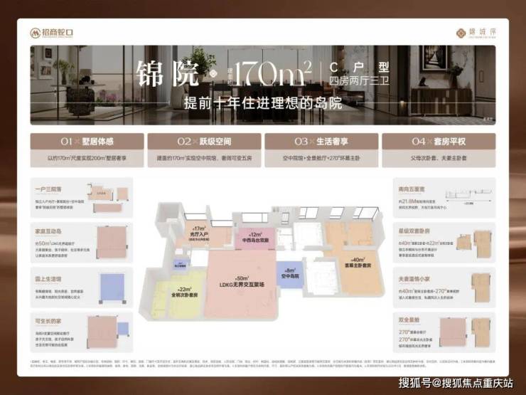 通过独立入户光厅、景观阳台与空中岛院的组合,奢享“前庭后院”的墅居体验。岛院与X变量空间联动客厅,可打造为亲子天文馆、自然画室等兴趣场域。双270°环幕视野结合约50㎡LDKG超级厅,近瞰3000㎡下沉园林,远眺城市繁华。约40㎡主卧套房与约22㎡全明次卧,让170㎡平层拥有200㎡+的空间体验,以匠心设计实现千万级墅质生活。