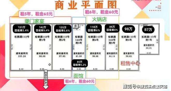 租5年,65/㎡,回报率5.4-5.6%